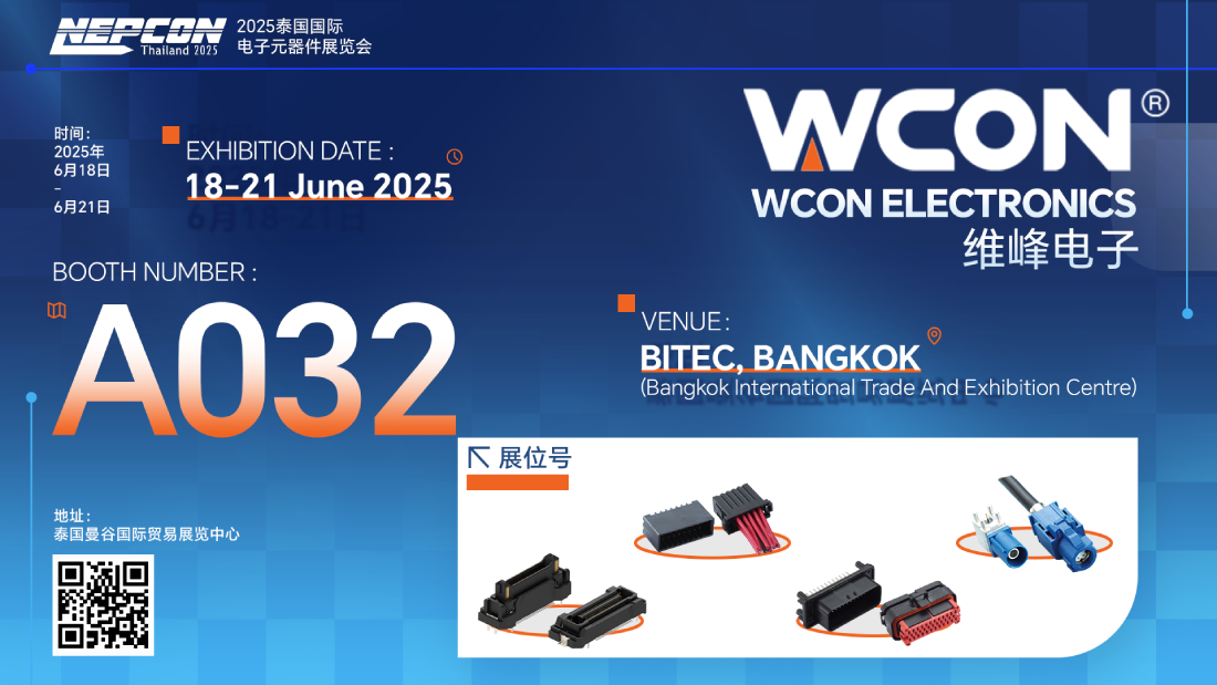 2025年6月18-21日,泰國國際電子元器件、材料及生產設備展覽會將泰國曼谷國際貿易中心盛大開幕!這是東盟地區規模最大、最專業的電子元器件展覽會。在展會現場,維峰電子技術團隊將分享連接器在智能制造中的創新應用。我們誠邀您蒞臨A032展位,共探電子產業新機遇,攜手開拓東南亞市場!